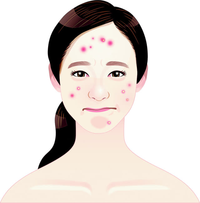 호르몬영향으로 피지분비가 일시적으로 증가될 경우 여드름이 발생됩니다.